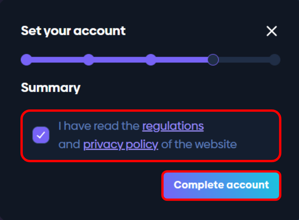 ✅ Tick box to confirm Regulations and Privacy Policy