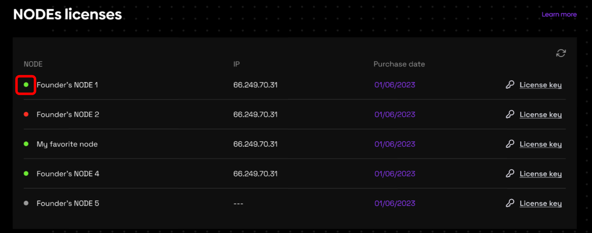 NODE status color explanation: