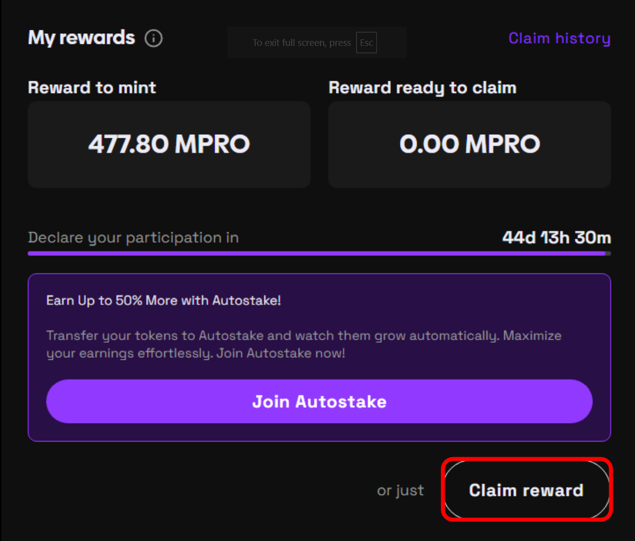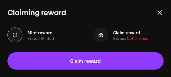 Once you minted your reward you can select Claim reward