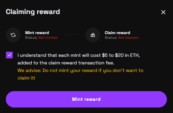 <mark style="background-color:red;">**We advise: Do not mint reward if you don't want to claim it!**</mark>
