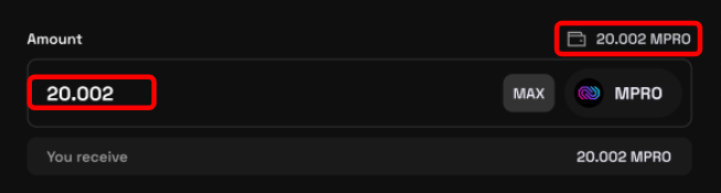 ⚫This section allows user to select the quantity of MPRO they would like to bridge