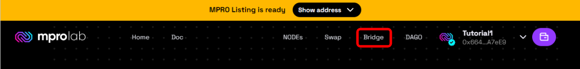 ⚫This section allows user to select from which blockchain they would like to bridge MPRO to another blockchain.