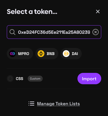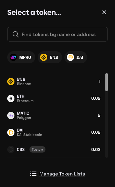 ⚫This section allows the user to select a token for swapping