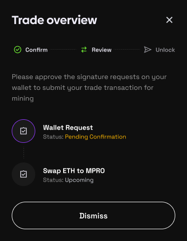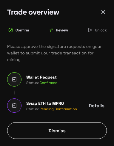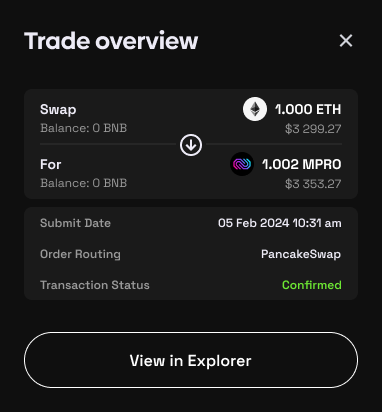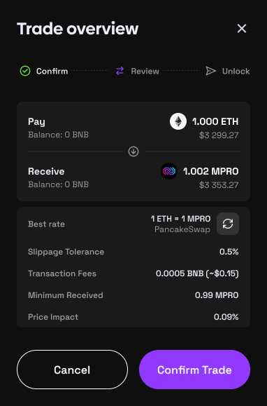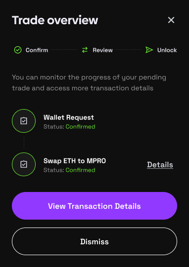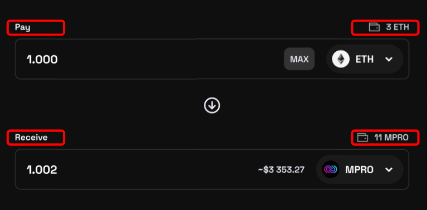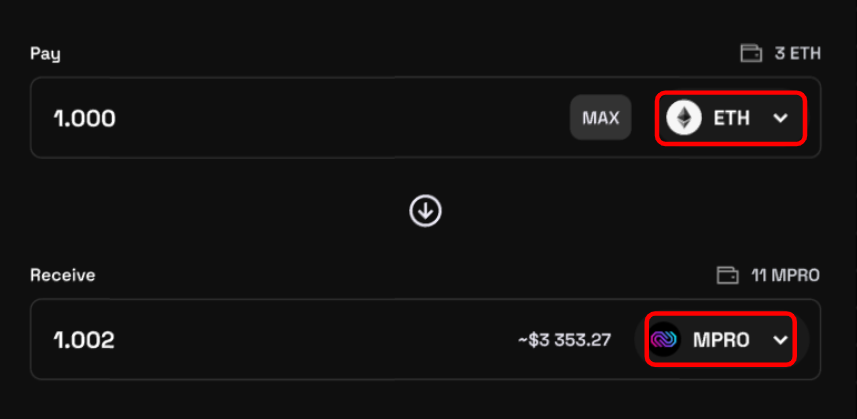 In this case user swap ETH to MPRO